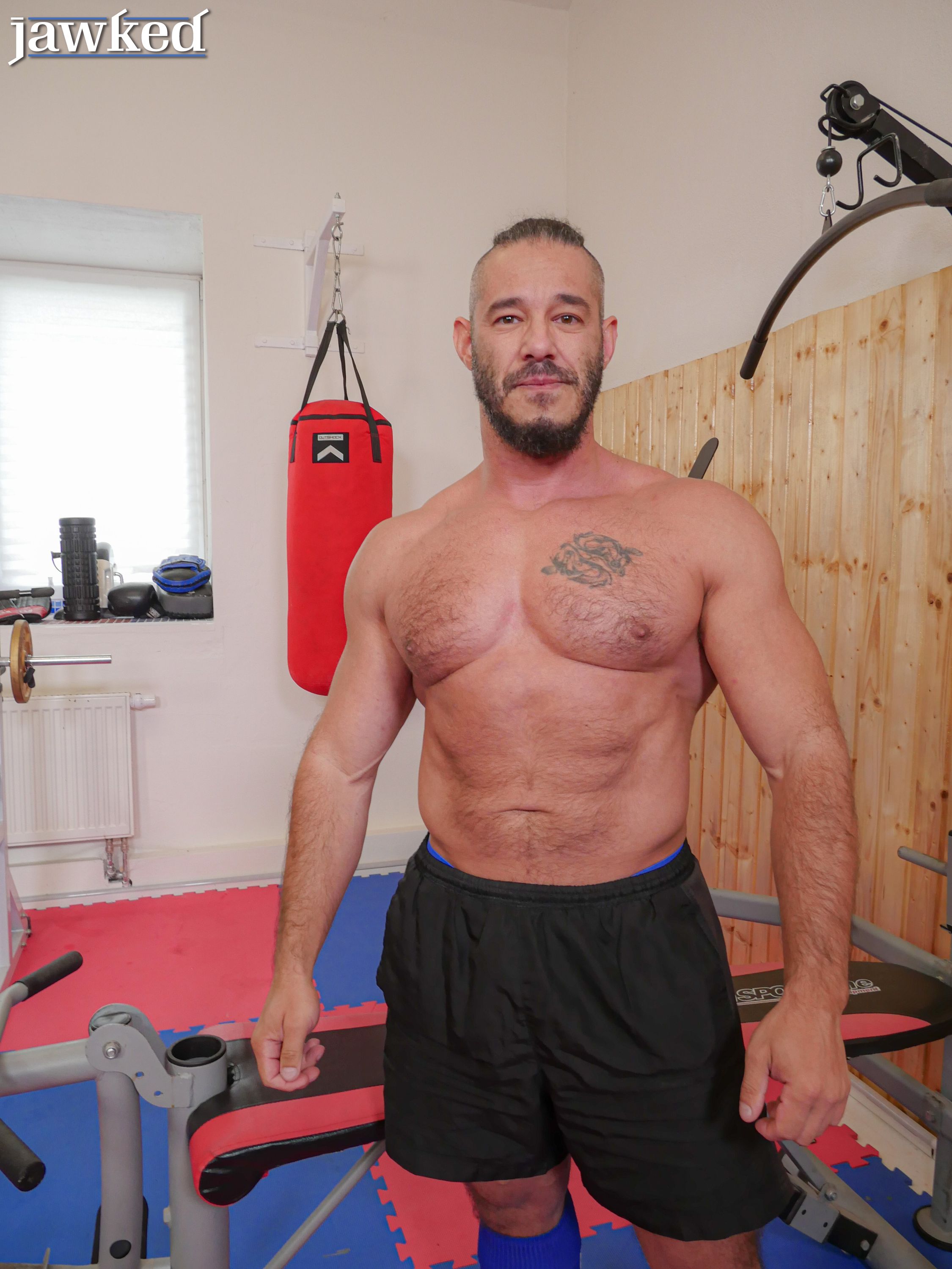 Muscular gay men Logan Aarons & Derek Kage have hardcore anal sex at the gym