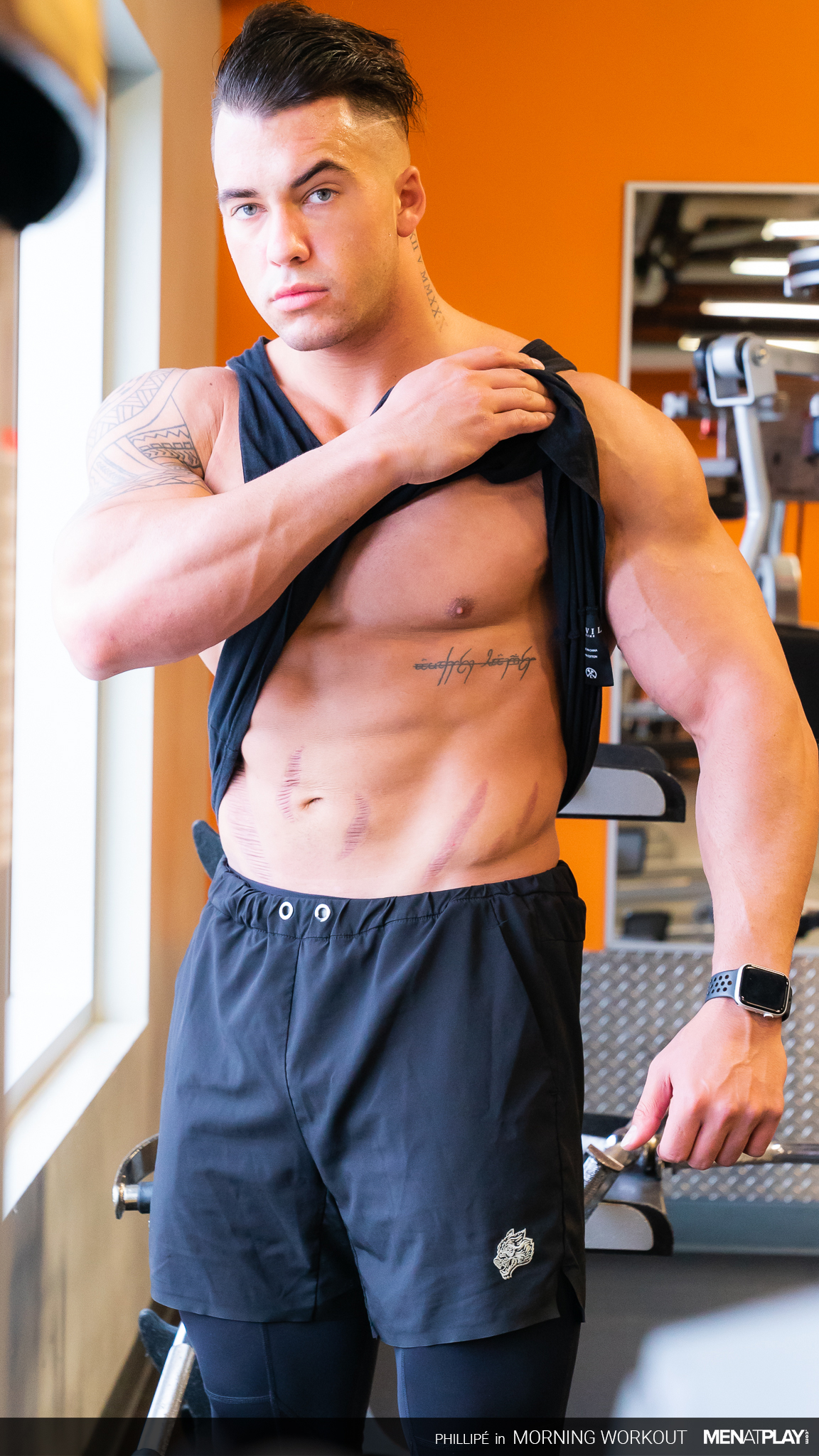 Gay athletes Masyn Thorne, Cameron Neuton & Damian Night fuck hard at the gym