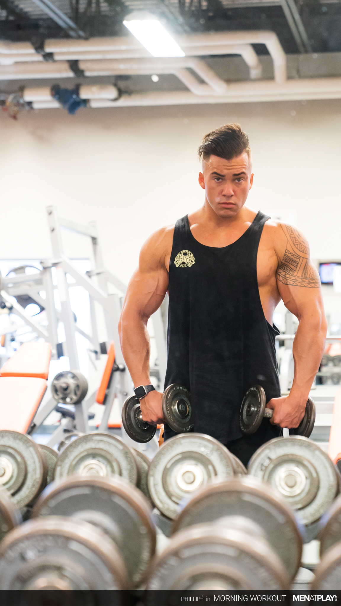 Young Straight Gym Lad Shows off his Muscles & his Huge Uncut Cock gets Wanked by another Man!