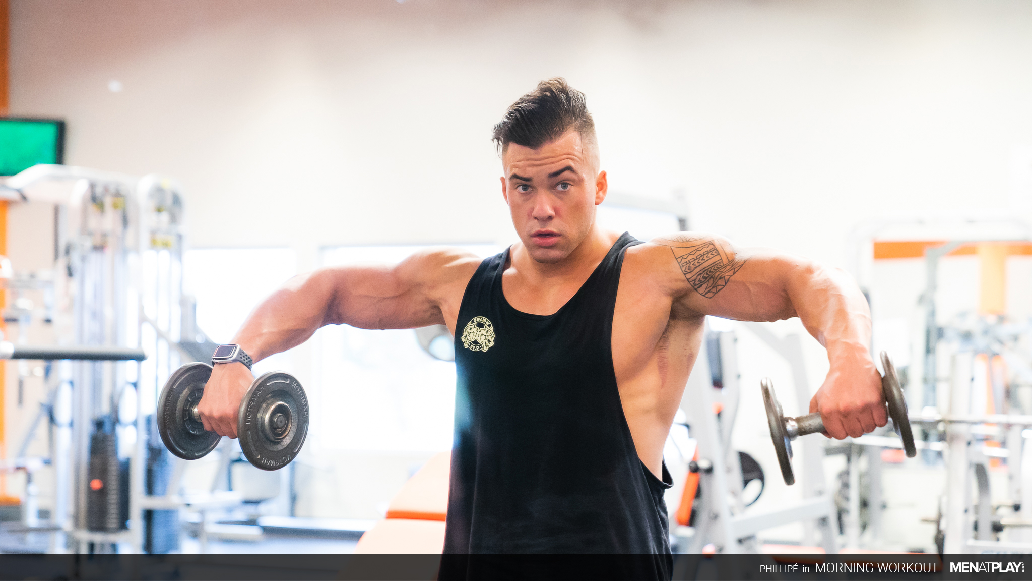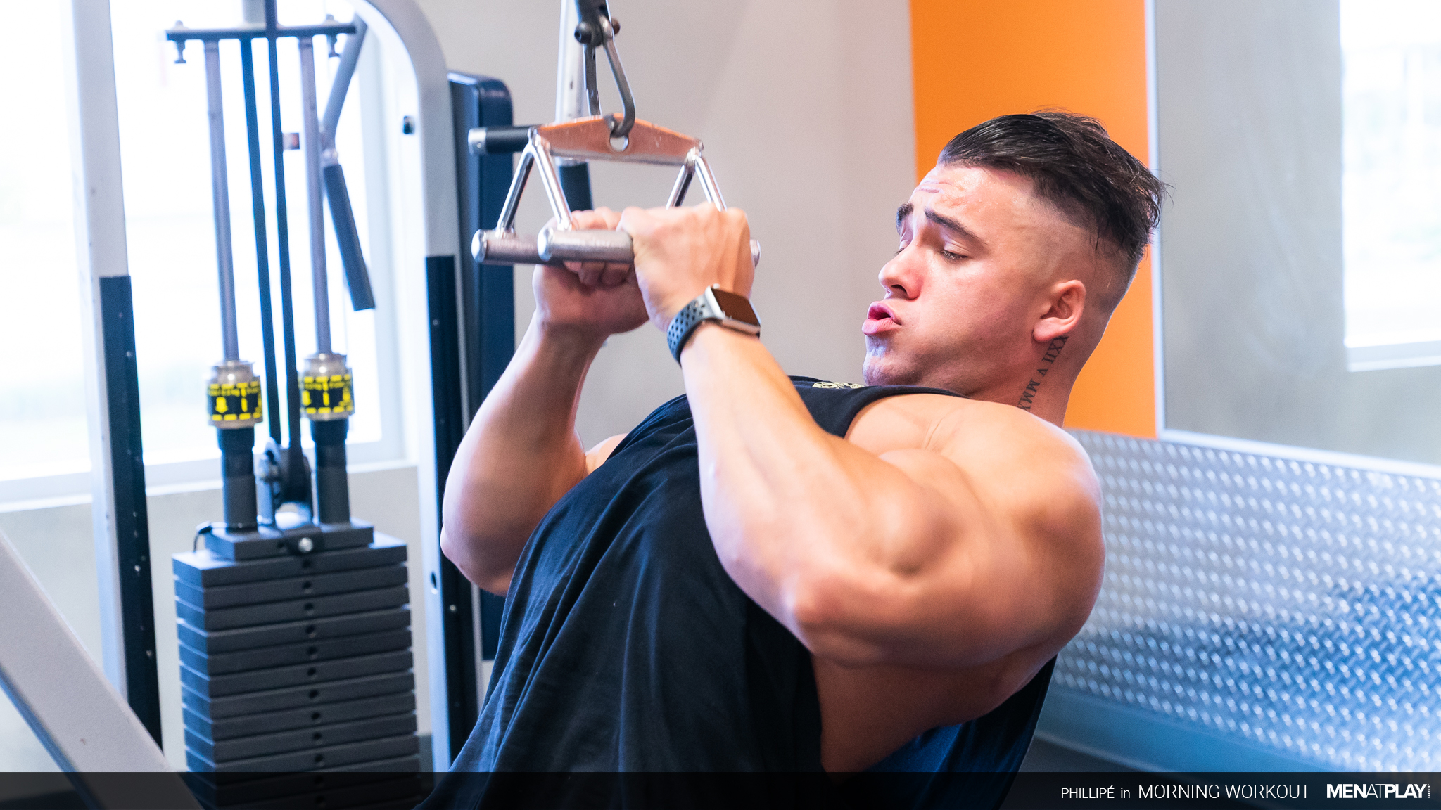 Muscular gay men Logan Aarons & Derek Kage have hardcore anal sex at the gym