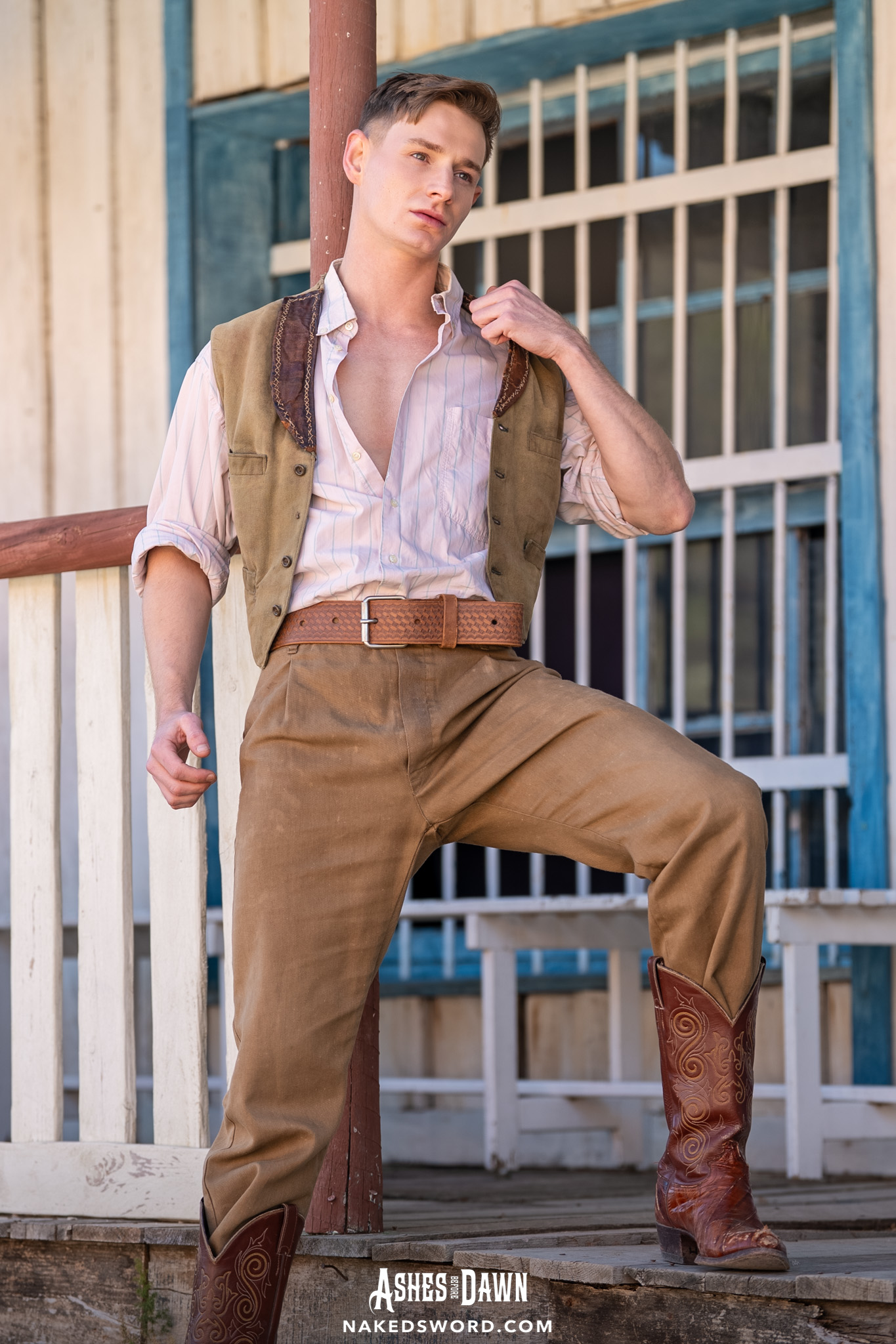Hot gay stud Dante Martin has hardcore anal sex with a cowboy outdoors